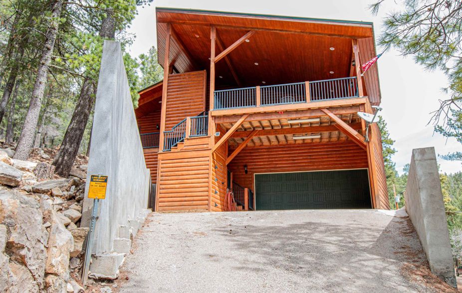 Imagine a stunning log-sided home that beautifully blends rustic charm with modern comfort. This home is nestled on approximately 1.36 acres, surrounded by tall pines that backs the Lincoln National Forest. As you approach, the warm wood exterior invites you in, hinting at the cozy interior that awaits. Upon entering, you’re greeted by a spacious living area that boasts high, vaulted ceilings creating an airy and inviting atmosphere. This living space opens up to the dining area and an expansive kitchen, designed for both cooking and entertaining. Featuring ample counter space, modern appliances, and a large island, it’s perfect for family gatherings or hosting friends. The home has large windows that flood the rooms with natural light. The kitchen flows seamlessly into a second living space, ensuring everyone feels connected. For those who work from home or enjoy hobbies, a dedicated office area provides a quiet retreat. The home includes four bedrooms, each designed for comfort and relaxation. The two well-appointed bathrooms feature modern fixtures and plenty of storage. A finished basement area offers additional living space, ideal for guests or a home office, enhancing the home's flexibility. Cozy up during cooler months with two efficient pellet stoves, providing warmth and ambiance throughout the living areas. Step outside onto a large covered deck, perfect for outdoor gatherings or simply enjoying a quiet morning coffee. A balcony and porch further extend your outdoor living space, allowing for views and fresh air. The property also features a large drive-through garage, accommodating up to four vehicles with ease, making entering and exiting a breeze. Across the road, a generous 40x30 workshop with power offers endless possibilities for projects, hobbies, or storage. This log-sided home is not just a dwelling; it’s a retreat, offering an ideal blend of comfort, functionality, and space for all your needs. Don’t miss out and schedule your showing today and don’t forget to check out the 3D Virtual Tour!