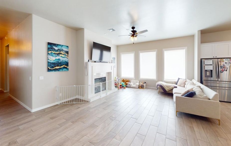 VA Assumable at 2.5%!! Beautiful light and bright home in the Hermoso El Sol Subdivision, located at the end of the road. Discover this modern Farmhouse design, with an open-concept floor plan! This one-owner well maintained home has beautiful wood plank tile floors and 10 ft. ceilings throughout. The kitchen offers a large island, a walk-in pantry and gas range with stainless steel appliances and farmhouse style sink. Primary room has a deep soaker tub, separate shower and large walk-in closet. Guest bedrooms are spacious with walk-in closets also. Step outside to a nice covered patio with a gas connection for your grill, and enjoy sitting by the firepit in the beautiful large backyard. Recent updates include a sprinkler system to maintain the gorgeous lawn, custom cellular blackout honeycomb blinds, top/down shades in primary bedroom, ring doorbell, an alarm system with window and door sensors! This one is a must see and won't last long!
