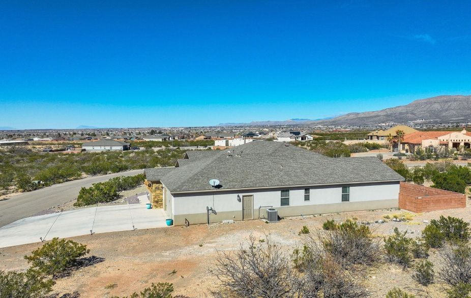 Welcome to an exceptional desert oasis where luxury meets thoughtful design. This magnificent residence offers 5 generously proportioned bedrooms and 3.5 bathrooms, creating the perfect sanctuary for both gracious entertaining and comfortable family living.The office is a dynamic, multi purpose space that seamlessly transforms to meet various needs-imagine a craft room, play room, theater or study. The heart of this home showcases an open-concept layout adorned with soaring ceilings and expansive windows that flood the space with natural NM sunlight. The gourmet kitchen features elegant granite countertops and premium stainless steel appliances, perfect for culinary enthusiasts. A stately fireplace serves as a focal point, adding both warmth and sophistication to the living area.The lavish primary suite stands as a testament to luxury living, complete with a spa-like bathroom featuring both a walk-in shower and an indulgent soaking tub. The thoughtfully designed split floor plan includes a guest room with its own private en suite bathroom, while two additional guest rooms share a convenient jack-and-jill bathroom arrangement. Nestled in a peaceful cul-de-sac, this prestigious Presidio II floor plan home offers breathtaking views of mountains, desert landscapes, and spectacular sunsets from every angle. The low-maintenance landscaping perfectly compliments the desert environment while maintaining an air of sophistication. Located near the golf course, essential amenities and a short commute from the base, this residence combines the serenity of desert living with the convenience of accessibility. This is more than just a house; it's an invitation to experience the pinnacle of NM luxury living. Don't miss your opportunity to call this home!