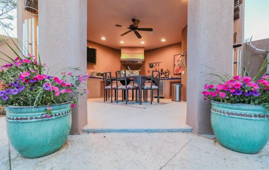 Resort-Style Living in a Stunning Southwest Retreat Step into your own private resort with this exceptional Southwest-style home, offering over 3,500 square feet of luxurious living space. Designed with both comfort and sophistication in mind, this property showcases meticulous craftsmanship and high-end finishes throughout. At the heart of the home is a massive great room, where a floor-to-ceiling stacked stone fireplace sets the tone for cozy evenings and impressive entertaining. The ultra-chef’s kitchen is a dream come true, featuring rich granite countertops, custom cabinetry, a professional-grade Wolf 6-burner gas stove, and a built-in Sub-Zero refrigerator and freezer. Whether you prefer casual meals in the cozy breakfast nook or more formal gatherings in the dining area, this home accommodates both with ease. A conveniently located powder room adds to guest comfort. The split floor plan ensures privacy, with the expansive primary suite serving as a true retreat. This serene space includes a kiva-style fireplace, a relaxing sitting area, dual walk-in closets, and a spa-inspired en-suite bathroom with dual vanities, a copper soaking tub, and an oversized rain shower. Bedrooms two and three are generously sized and share a stylish Jack-and-Jill bathroom. Additional amenities include a large laundry area with built-in cabinetry and a butler’s pantry-style sink, as well as a spacious attached 2-car garage and a separate attached 1-car garage. One of the home’s most impressive features is its seamless connection to the outdoors. Every room offers direct access to the spectacular central courtyard—an entertainer’s paradise with a built-in firepit, enclosed outdoor kitchen, and convenient half bath. Off the great room, the tastefully fenced side yard includes a covered patio and a hot tub, perfect for unwinding beneath the desert sky. This home is more than a place to live—it’s a lifestyle. Come experience resort-style living every day. Take a look at the 3D tour and call today to see this one of kind home in person.