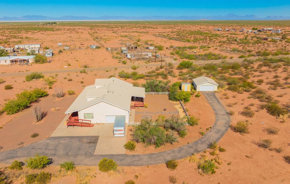 Looking for a unique home with lots of character, seclusion and space - then please see this beautiful home. It sits on 5 acres and has an attached 2 car garage as well as another 2-car garage which could also make a great workshop or hobby place. The home has a full length covered front porch for enjoying your morning coffee and the covered back porch is perfect for cool evenings with views of Sierra Blanca. When you walk inside you'll be in awe at the size of the living room/kitchen/dining area with it's extremely tall ceiling, wood ceiling beams and lovely hardwood floors. The large master bedroom has a walk in closet and bathroom. The 3 other bedrooms are nice size and the full bath is close by. The loft is very spacious and also has a closet - it could have many uses. At the other end of the house is the laundry room, 1/2 bath and office/game room. The master bedroom and dining area have doors leading out to the covered back porch which everyone will enjoy. This home sits off the beaten path and is ready for a new owner; this is a must see property.