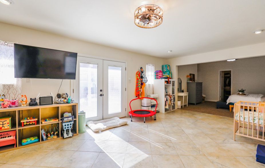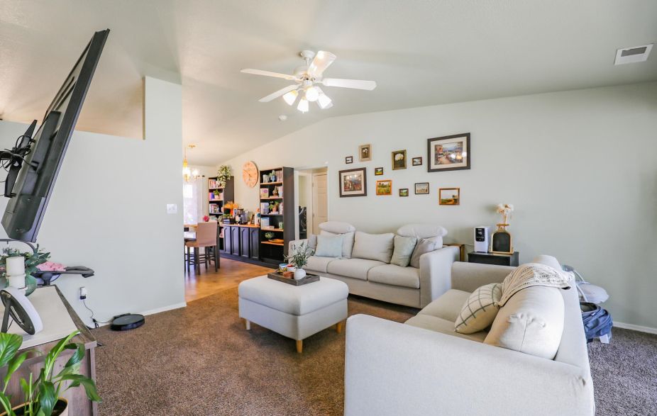 This beautiful home offers a bright and welcoming layout with features you'll love! The sunny kitchen boasts a breakfast bar area, granite countertops, and a pleasing color palette, all complemented by a new refrigerator, gas stove, and dishwasher installed in 2023. Adjacent to the kitchen is an open dining room complete with shelving and a coffee bar—perfect for entertaining or enjoying your morning routine. Convenience meets functionality with a laundry room/pantry located just off the kitchen, which includes a new in 2023 stacking washer and dryer. The spacious living room features a lovely bay window alcove, flooding the space with natural light. The home includes 3 bedrooms and 2 full baths in a split floorplan, offering privacy and comfort. The primary suite is a standout, featuring a walk-in closet, ensuite bathroom, and a versatile bonus room with French door access to the backyard. This bonus space is ideal for a home office, sitting area, or hobby room. Outside, the property shines with a large, fenced backyard that includes turf for easy maintenance, a playground that stays with the home, and a storage shed for extra storage. The 2-car attached garage adds even more convenience. Don't miss the 3D tour—call today to learn more and schedule a showing! This home has it all!